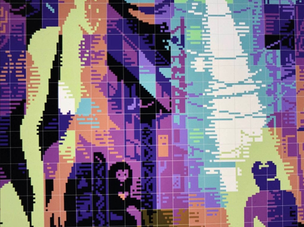 Quarter char hires (QCH) graphics mode by Copyfault. Each 8×2 pixel character location can contain 2 colors from a fixed 16 color palette.