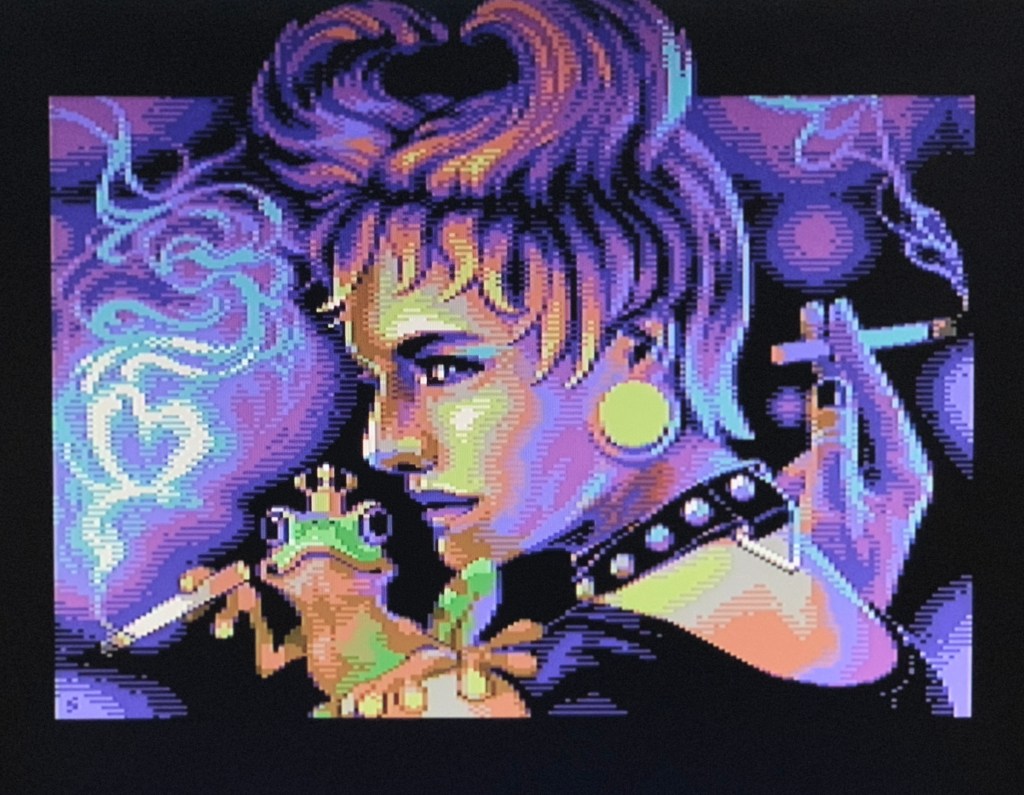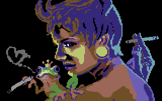 Commodore 64 multicolor image with sprites, 2022. Coding by Kakka/Extend. 160×200, 2:1 pixel aspect ratio. 16 sprites.