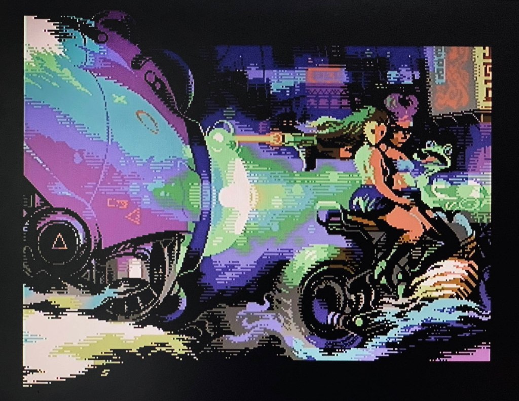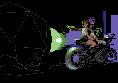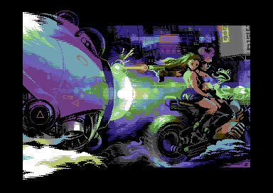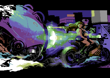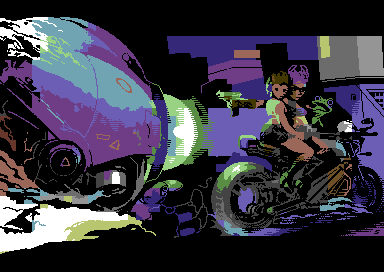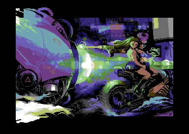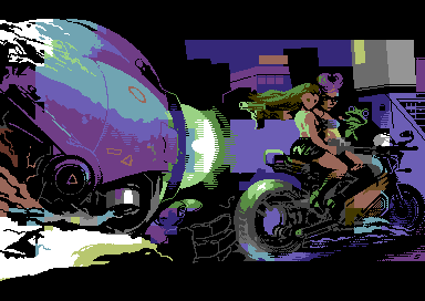 Commodore 64 quarter char hires (QCH) image with sprites, 2023. Coding by Copyfault/Extend ^ Dienstagstreff ^ The Obsessed Maniacs ^ The Solution. 7 sprites.