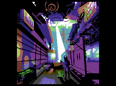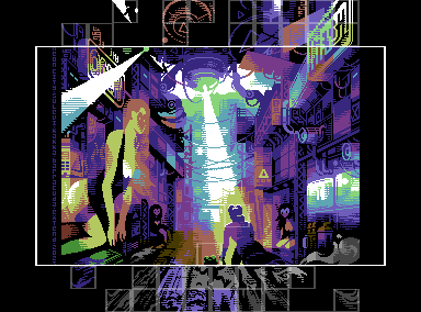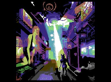 Commodore 64 hires image with sprites and music, 2023. Coding by Kakka/Extend, music by Barracuda/Extend. 320×284, 34 sprites.