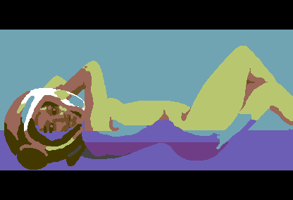 Commodore 64 hires image with sprites, 2023. 2nd prize in the Mysdata ’23 graphics competition. Sprites added with Albert. 416×200, 40 sprites.
