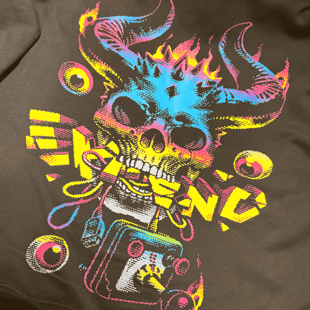 Second patch of the Extend hoodie. Previously silk screen, this time DTF printing with updated graphics.
