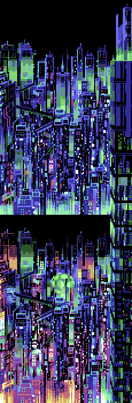 Graphics made with Procreate, Nomad, Blender 3D, Photoshop, Multipaint, Marq’s Petscii editor, VChar64 and CharPad C64 Pro.